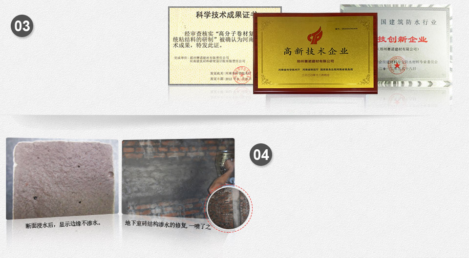 鄭州賽諾建材有限公司是由具有豐富大型項(xiàng)目工程服務(wù)背景的技術(shù)團(tuán)隊(duì)創(chuàng)建,是近年來(lái)建材領(lǐng)域迅速崛起的一支新軍。自成立之日起就一直致力于提供混凝土、磚石結(jié)構(gòu)建筑物的防水、防腐、滲水、滲漏檢測(cè)的咨詢(xún)、維護(hù)等一體化服務(wù),以其較高的性?xún)r(jià)比,創(chuàng)造性地解決了很多工程難題,受到工程界的普遍歡迎和好評(píng)。